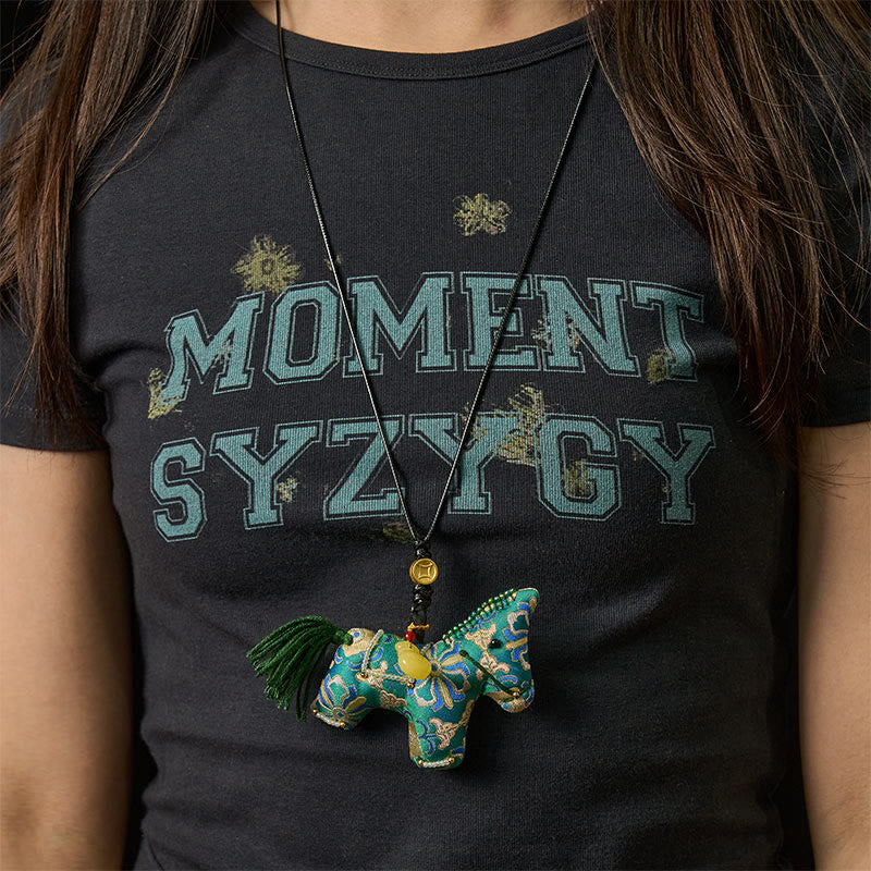 Décoration suspendue en brocart de soie à quatre faces en Buddha Stones, Année du Chant du Cheval