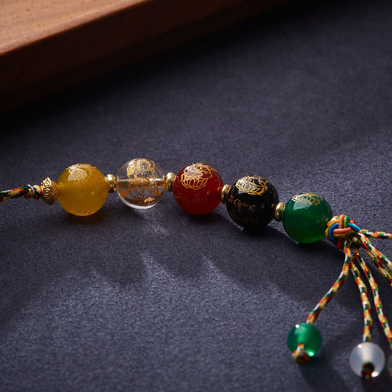 - Matière : Onyx noir, Agate rouge, Agate verte, Agate jaune, Agate blanche, Agate, Cristal, Corde
