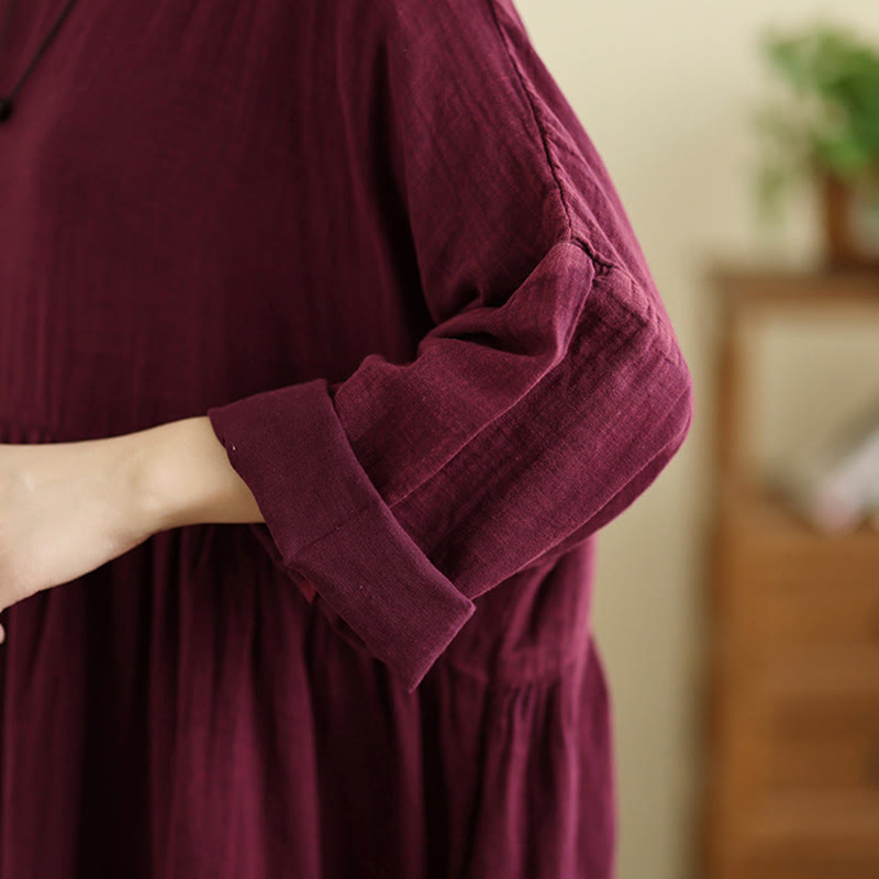 Robe midi en coton et lin à manches longues et poches, Buddha Stones Commute, couleur pure - Rouge - US4-12,UK/AU8-18,EU36-46(F) - image 16
