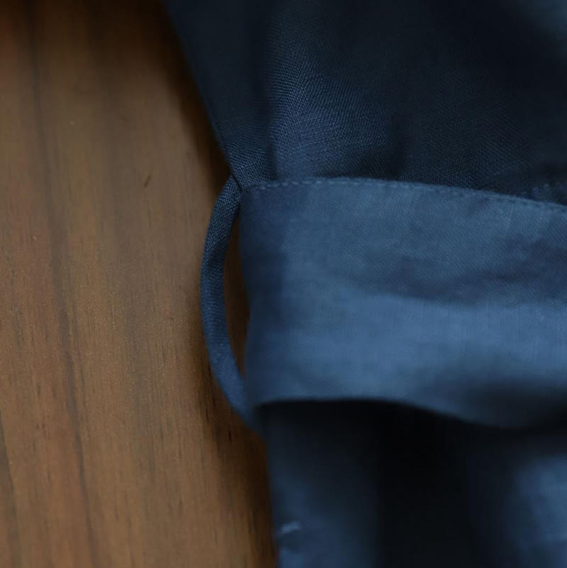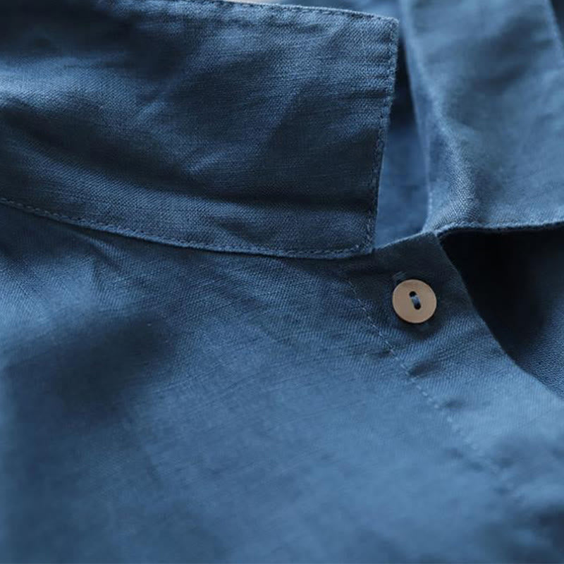 Robe midi décontractée en lin à lacets et col montant avec poches Buddha Stones - Bleu foncé - US8-10,UK/AU12-14,EU40-42 (2XL) - image 1