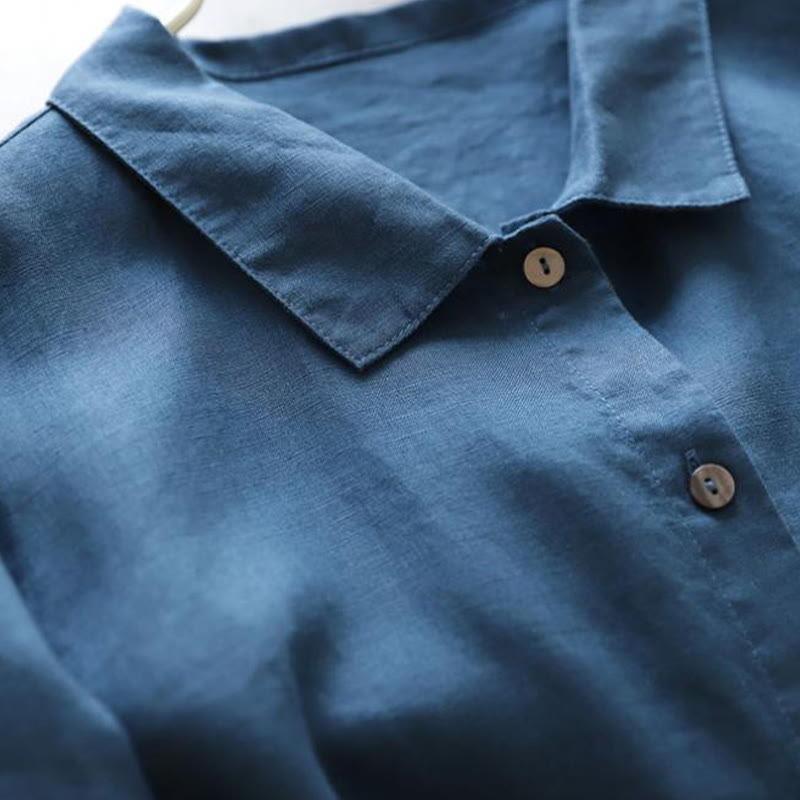 Robe midi décontractée en lin à lacets et col montant avec poches Buddha Stones - image 12