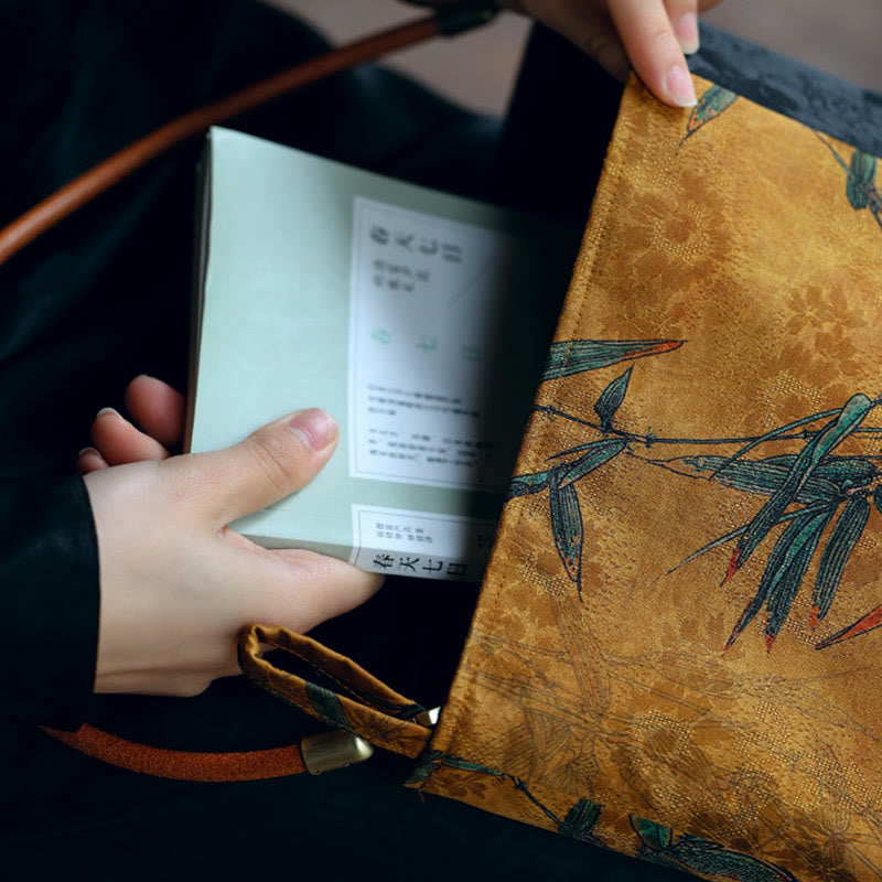 Sac à main en forme de Buddha Stones de bambou, fleur, papillon, kaki