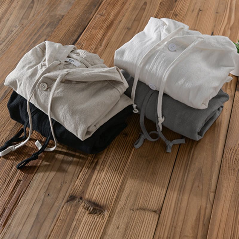 Sweat à capuche à manches longues et ourlet côtelé avec motif Buddha Stones pour homme, veste en coton et lin avec poches - image 10