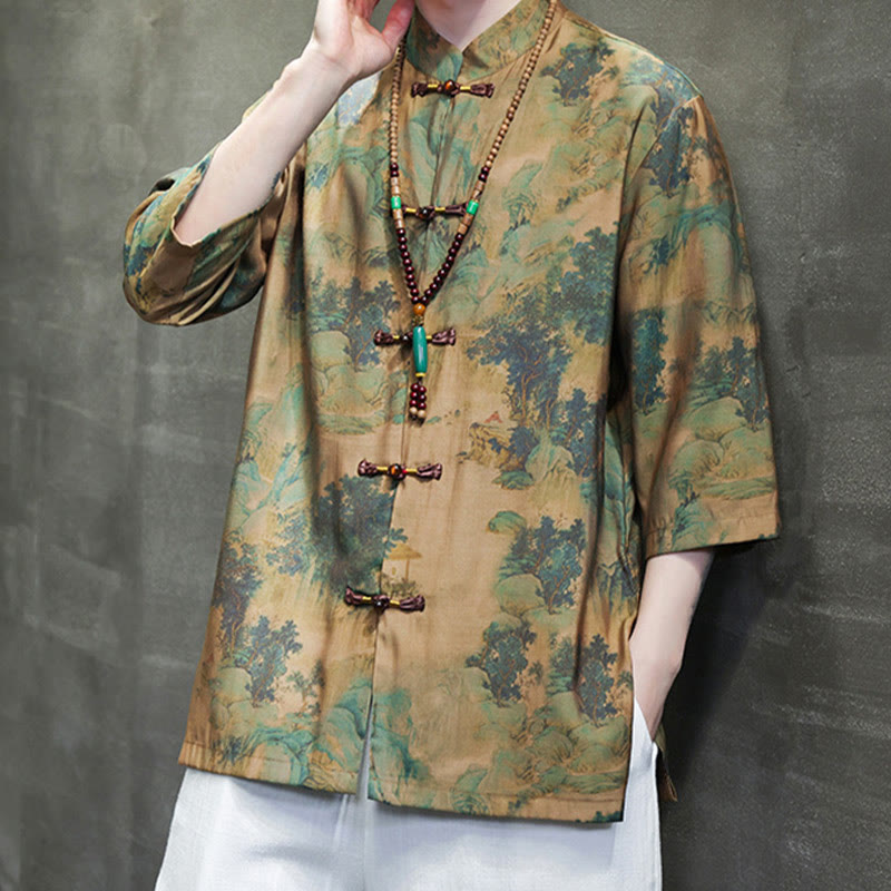 Le t-shirt Paysage Dragon chinois associe un motif de dragon majestueux à des éléments chinois traditionnels. Ce t-shirt à manches trois-quarts, fabriqué à partir d'un tissu respirant, assure le confort pendant la méditation et les pratiques spirituelles . Le motif paysage symbolise la force et la sagesse , ce qui en fait un choix idéal pour les hommes en quête de paix intérieure et d'équilibre. Adoptez la puissance et la sérénité de cette chemise unique. 💕
