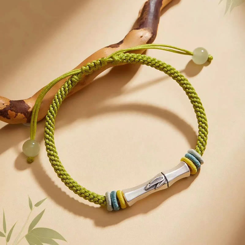 Bracelet d'illumination en bambou avec cordon rouge en argent sterling 999 et pierres de Bouddha BS 2