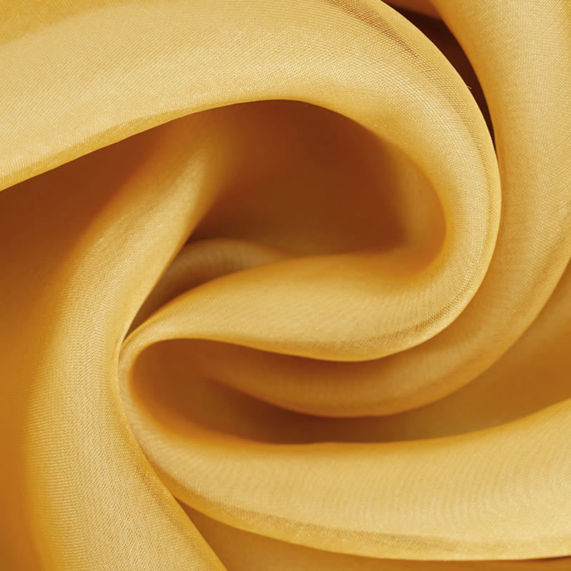 L'organza est un tissu léger, uni et transparent, fabriqué à partir de soie au toucher net, souvent utilisé comme couche extérieure pour ajouter un contour doux. L'organza peut créer une esthétique captivante et éthérée, qu'il s'agisse d'une superbe robe de mariée ou d'une robe de soirée exquise.