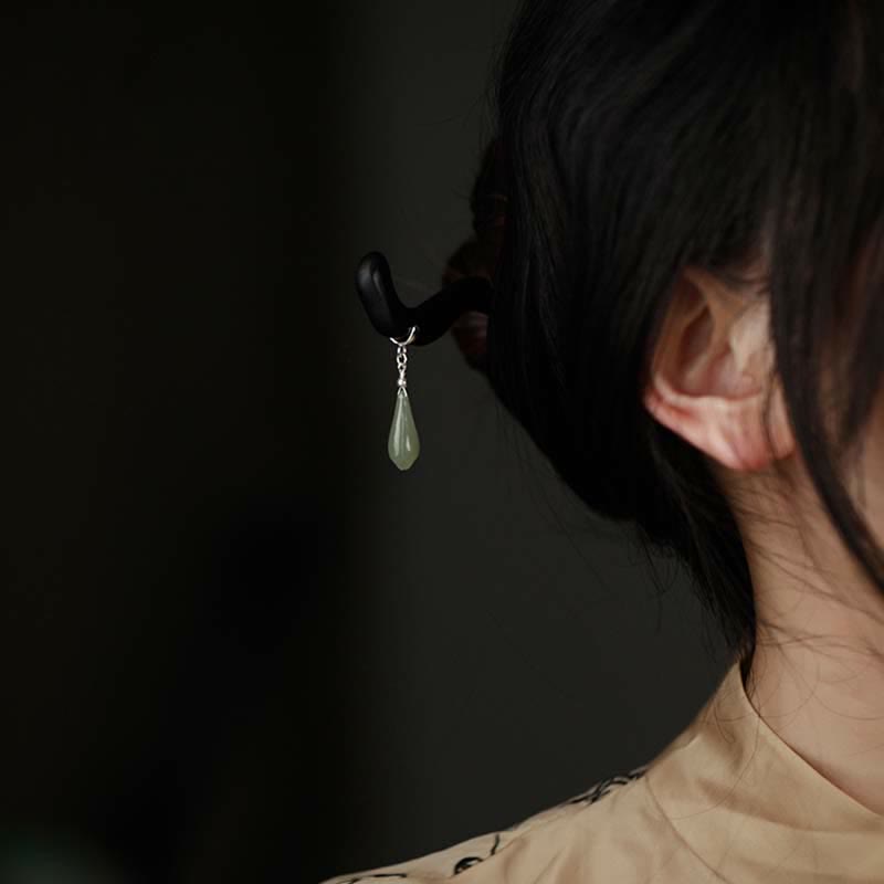 - Matériau : Jade Hetian, Argent sterling 925, Bois d'ébène
