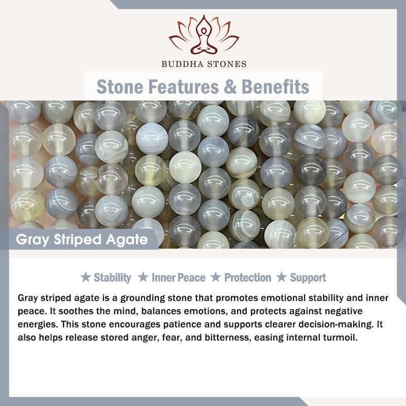 L'agate grise rayée est une pierre d'ancrage qui favorise la stabilité émotionnelle et la paix intérieure. Elle apaise l'esprit, équilibre les émotions et protège des énergies négatives. Cette pierre encourage la patience et favorise une prise de décision plus éclairée. Elle aide également à libérer la colère, la peur et l'amertume accumulées, apaisant ainsi les troubles intérieurs.