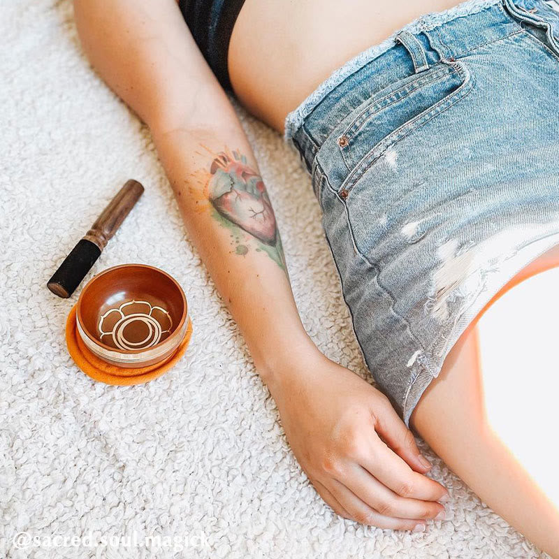 - Frappez le bol avec notre maillet en bois sur le bord ou le corps du bol