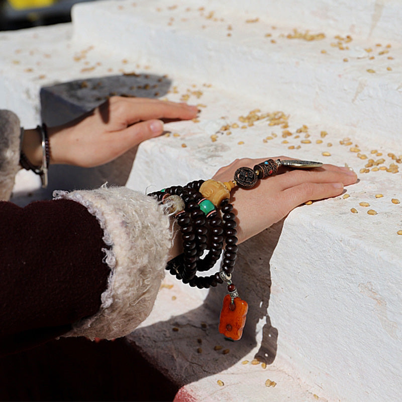 - Matériau : Graine de Bodhi, Cuivre, Os de yak, Turquoise, Corne de chèvre