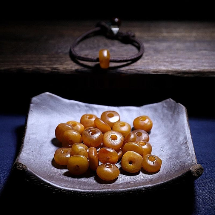 Oui, le produit est fabriqué à partir d'ambre naturelle. L'ambre naturelle est broyée en poudre puis transformée en perles.2. Pourquoi la couleur et le tourbillon de chaque perle sont-ils identiques ?