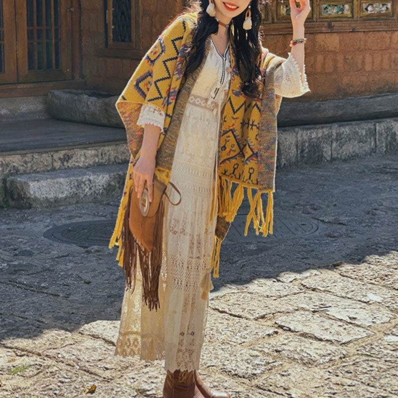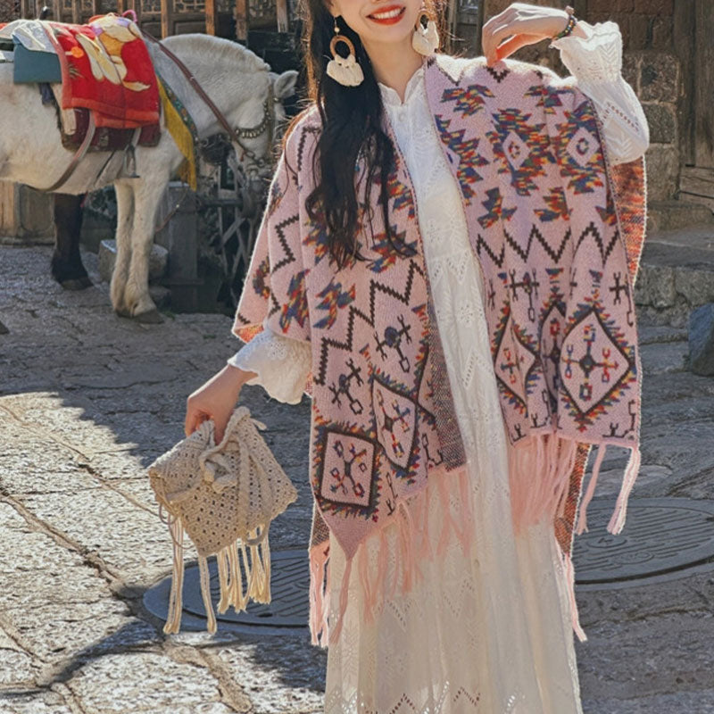 Le châle tibétain à rayures Buddha Stones allie confort et symbolisme spirituel. Idéal pour les voyages d'hiver, ce foulard confortable en tricot présente un motif géométrique rayé, représentant la stabilité et la clarté . C'est un accessoire parfait pour ceux qui recherchent à la fois la chaleur physique et une touche de perspicacité spirituelle pendant leur voyage.
