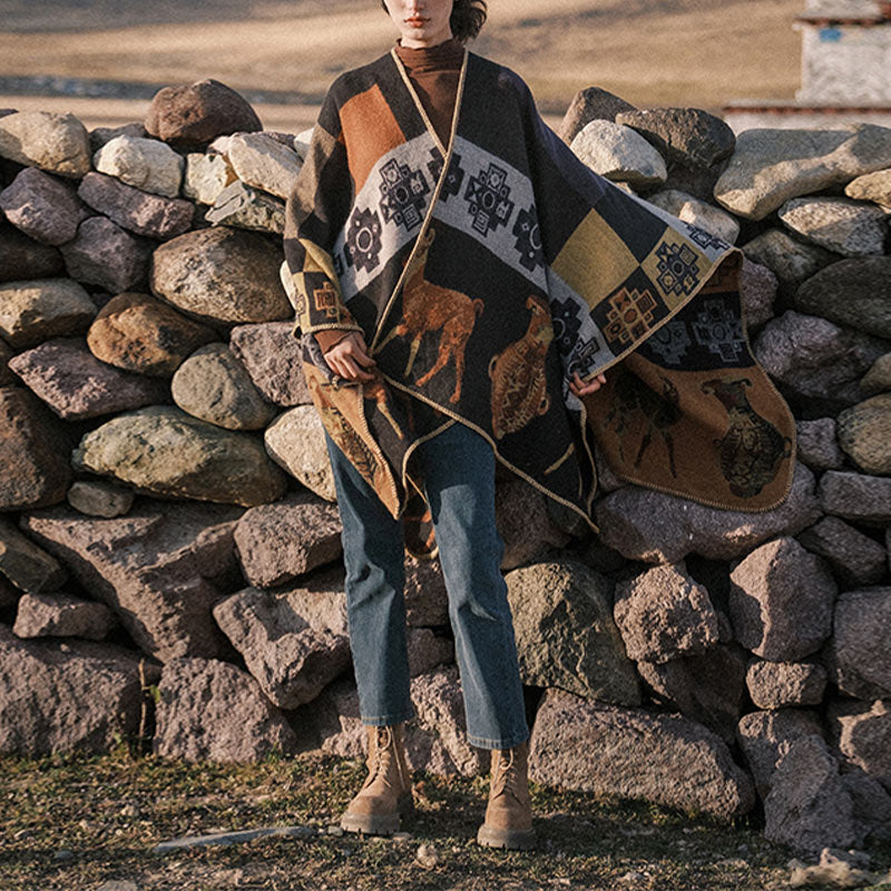 Le châle tibétain Buddha Stones, orné d'un vase à cerfs et de formes géométriques, est une fusion de thèmes naturels et de précision géométrique. Idéal pour l'hiver, ce châle de voyage confortable offre non seulement de la chaleur , mais apporte également une touche d' élégance inspirée de la nature à votre garde-robe. Le motif complexe de cerfs et de vases , associé à des motifs géométriques , fait de ce châle une pièce distinctive pour ceux qui aiment combiner la mode avec des éléments du monde naturel.