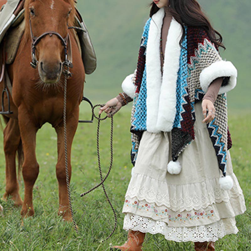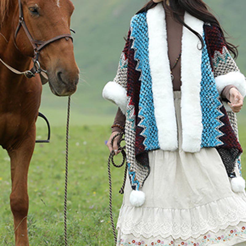 Le manteau châle ondulé Buddha Stones , doté d'un motif distinctif de lignes ondulées multicolores, capture parfaitement la beauté dynamique des paysages tibétains . Tricoté de manière experte pour une chaleur maximale et un confort inégalé, il constitue un compagnon idéal pour les voyages hivernaux froids ou pour ajouter une touche d' élégance chaleureuse à n'importe quelle soirée à la maison. Le design ondulé ajoute non seulement une esthétique vibrante, mais symbolise également la nature en constante évolution et fluide de la vie.
