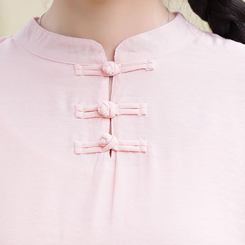 Ensemble de 2 pièces en coton et lin pour femme avec haut et pantalon uni Motif Buddha Stones Yoga Zen Tai Chi - Bouton grenouille chinoise rose (Haut et pantalon) - US8-10,UK/AU12-14,EU40-42 (2XL) - image 26