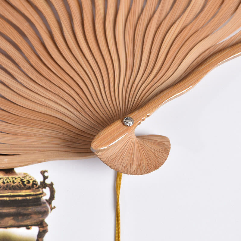 Éventail pliant en bambou avec Buddha Stones, grues, nuages de bon augure, dégradé de couleurs unies, tissu en coton et lin