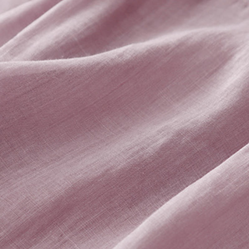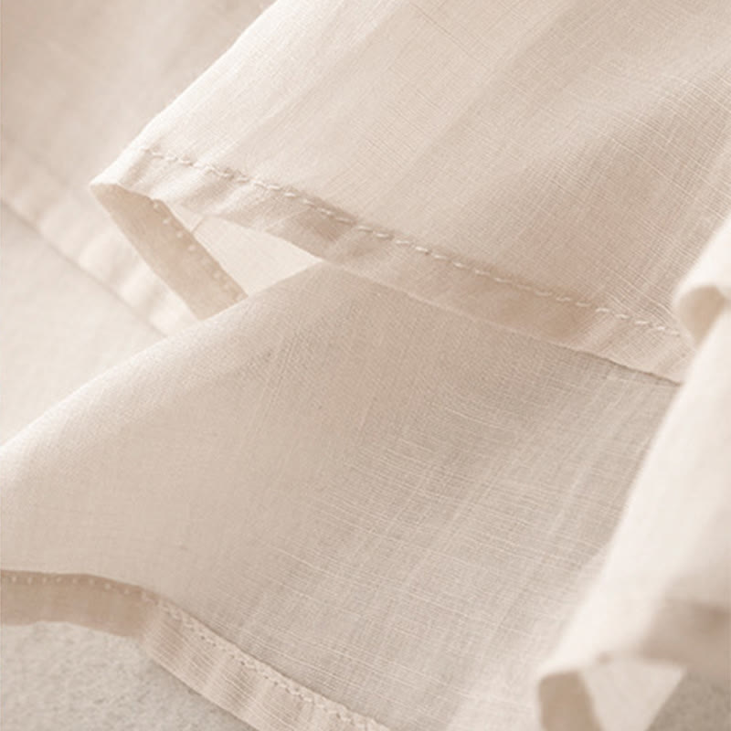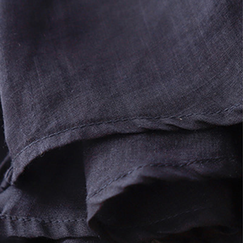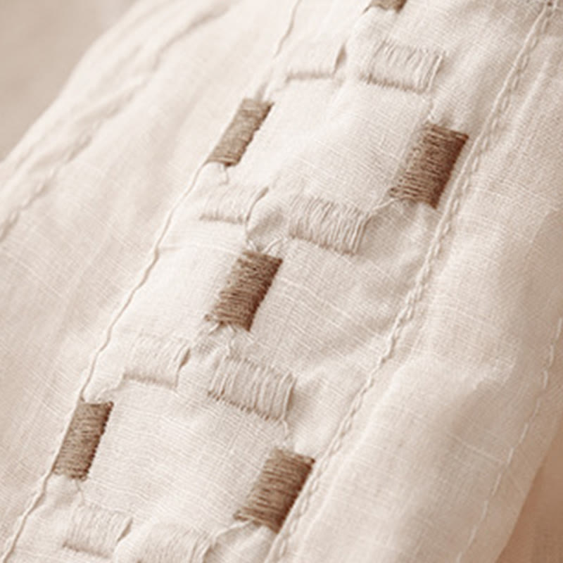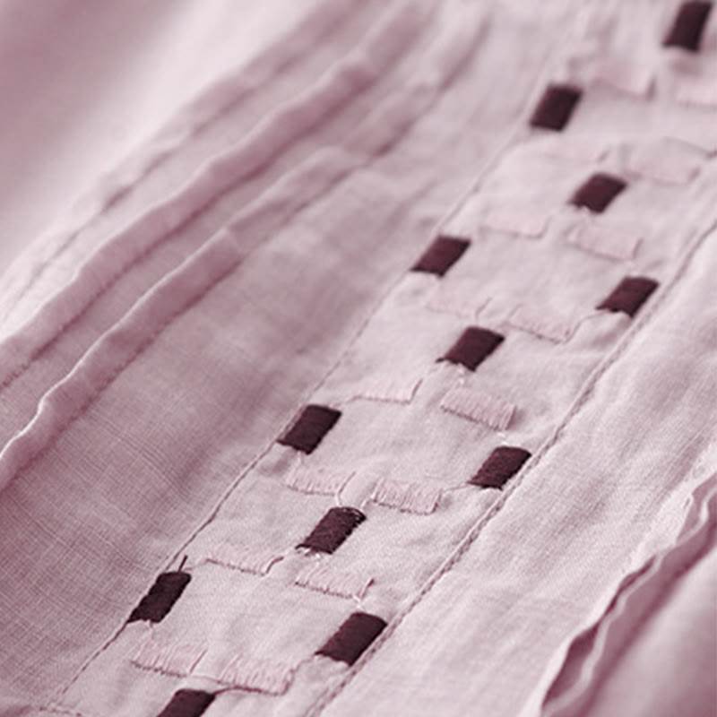 T-shirt à manches courtes en coton et lin pour femme, col ras du cou et plis, broderies de Buddha Stones