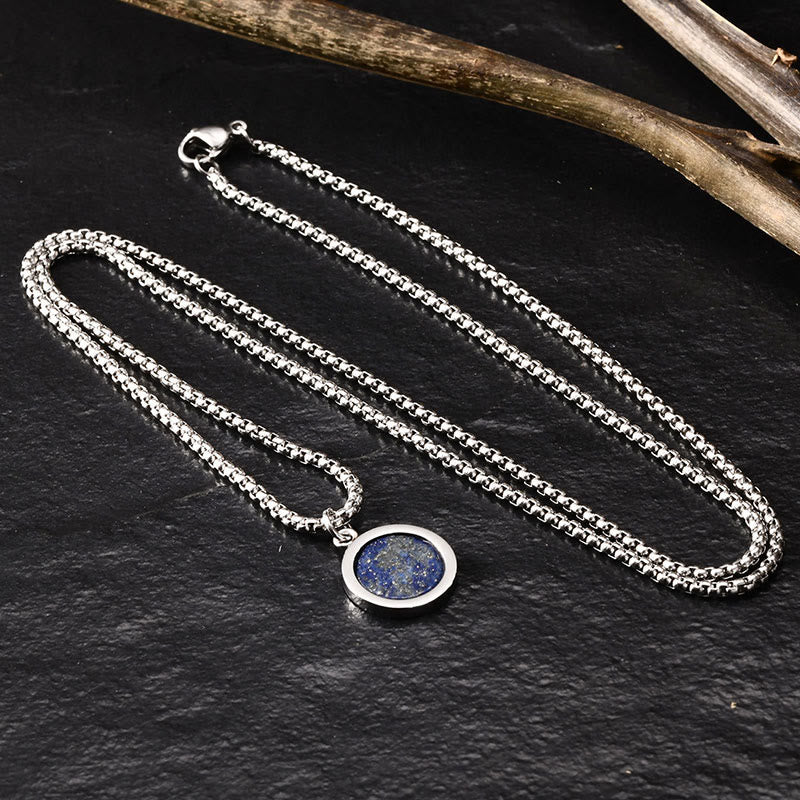 - Matériaux : Œil de tigre, turquoise, lapis-lazuli (lazurite), malachite, acier titane