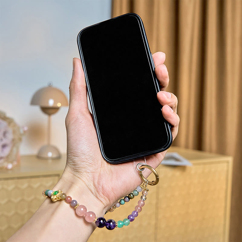 Buddha Stones Tourmaline naturelle Quartz fraise Améthyste Porte-clés positif Décoration à suspendre pour téléphone