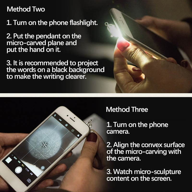 Placez le côté surélevé de la puce à côté des yeux et vous pourrez observer directement le contenu à l'intérieur avec vos yeux.