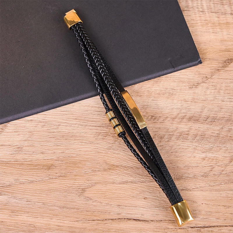 Simple et mature : Le noir symbolise la simplicité, le classicisme et la maturité. Porter un bracelet en cuir noir permet d'afficher son goût et son style, donnant à celui qui le porte une allure plus mature et confiante.