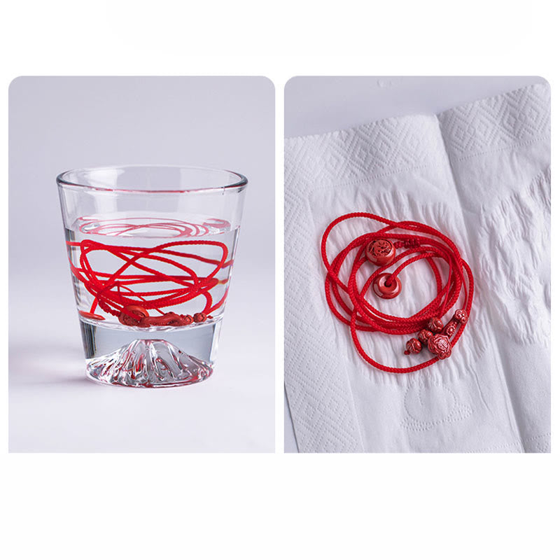 Dans les lignées du bouddhisme tibétain Vajrayana, il est courant d'attacher un cordon ou une ficelle autour du poignet lors des cérémonies. Traditionnellement, le lama bénit le cordon, puis fait un nœud et l'imprègne d'un mantra. Comme dans d'autres traditions, on dit que ces cordons rouges portent chance et offrent protection. Dans la légende chinoise ancienne, le fil rouge du destin est invisible et relie tous ceux dont les vies vont s'entremêler. Il est gouverné par le dieu chinois du mariage, Yue Lao, car il est principalement associé au lien entre deux personnes destinées à se marier. Tout au long de l'histoire et à travers les philosophies, le fil rouge a été porté pour la protection, la foi, la chance, la force et la connexion.