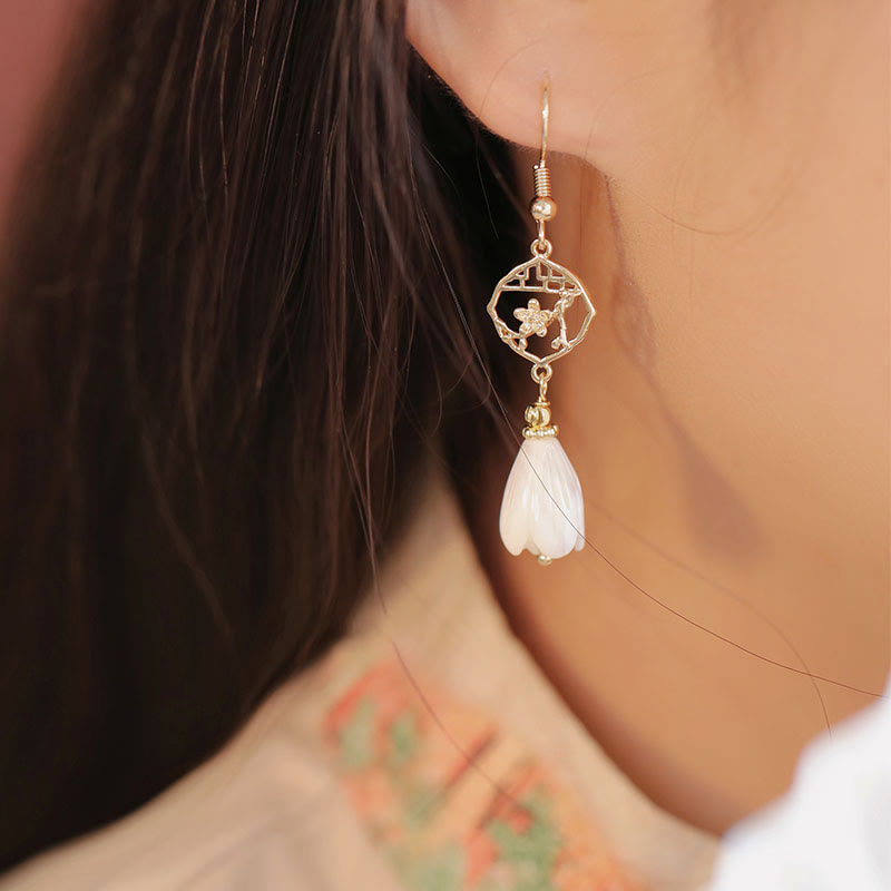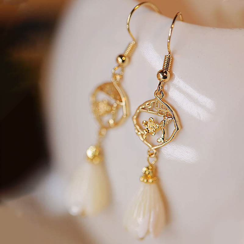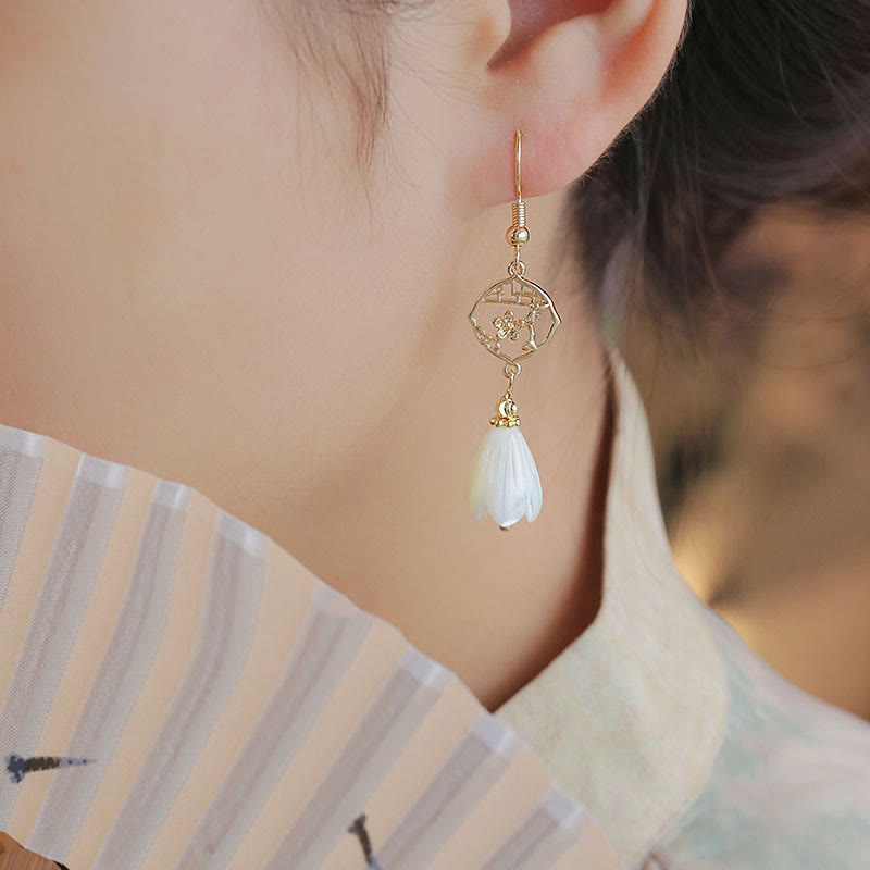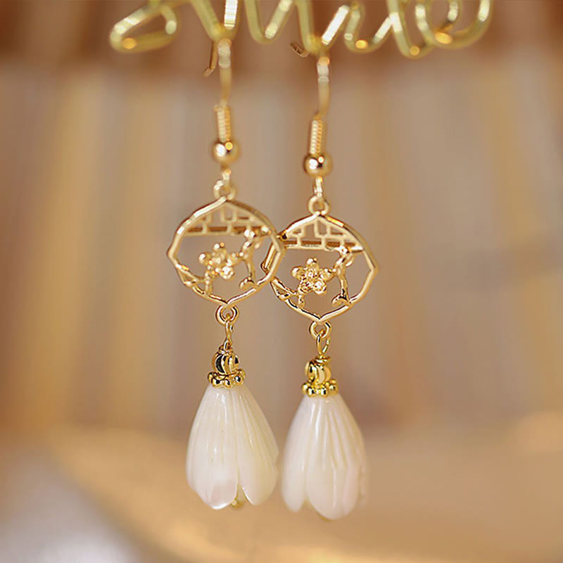 - Matériau : pierre de Tridacna, cuivre, cuivre plaqué or 14 carats, tiges en cuivre