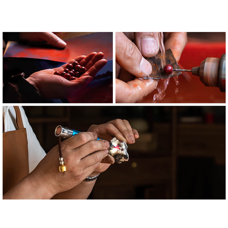 Dans la culture bouddhiste, le cinabre est souvent utilisé pour fabriquer des perles de prière et des chapelets. Il est utilisé pour réciter les écritures bouddhistes. Il peut calmer l'esprit des gens, les calmer, les concentrer et améliorer leur sagesse. C'est une mascotte essentielle pour ceux qui vénèrent Bouddha.