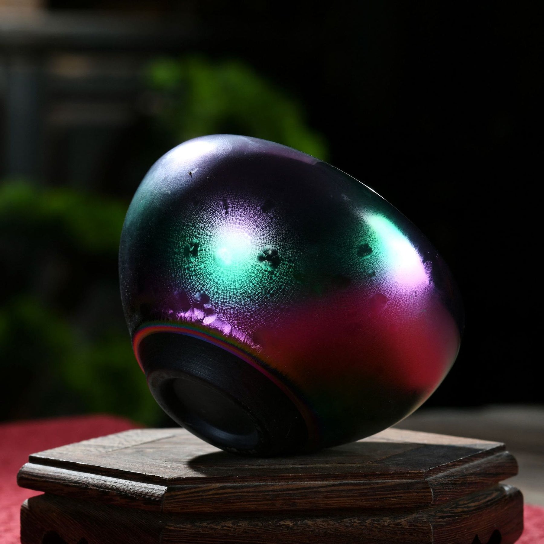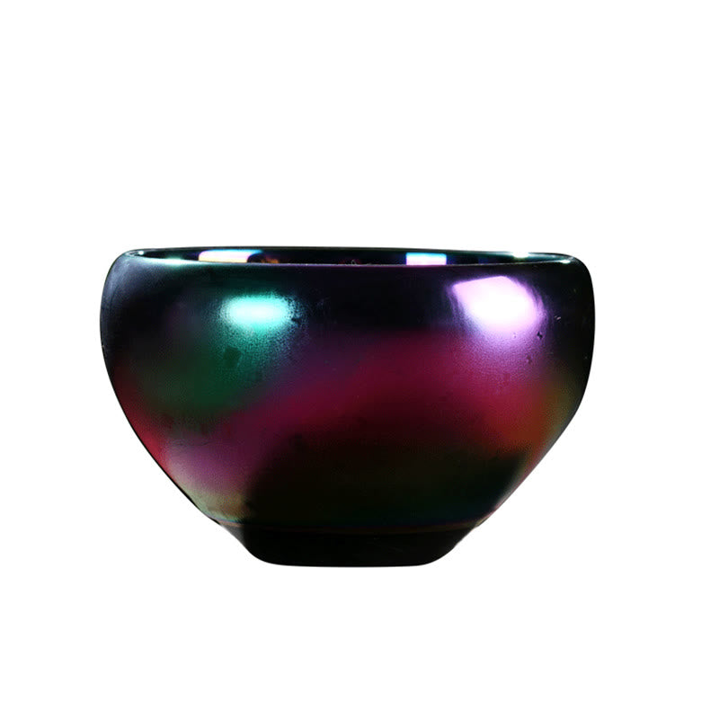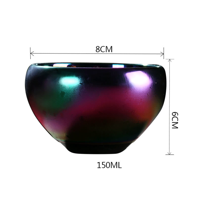 Ces tasses sont appréciées pour leur émail sombre et épais aux « effets spéciaux » colorés. Ces motifs spéciaux sont obtenus par une cuisson à haute température, de sorte que l'émail commence à se cristalliser en de magnifiques motifs. Les motifs qui peuvent apparaître peuvent par exemple être des rayures, des plumes ou des taches d'huile.