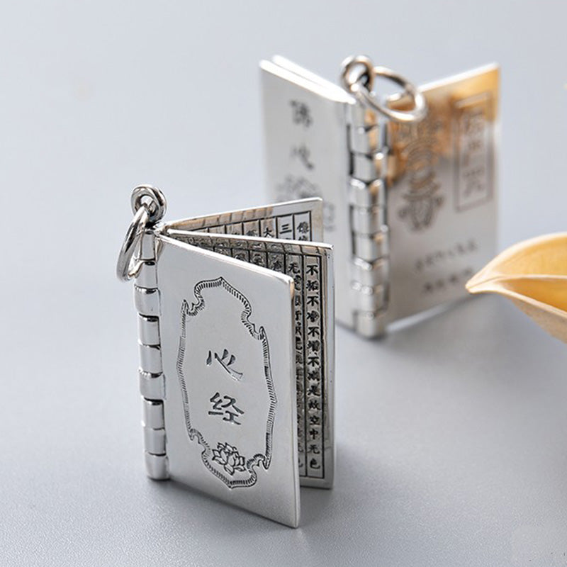 Collier pendentif en argent sterling 990 Buddha Stones et cœur Sutra de la grande compassion Shurangama Mantra Lotus Vajra Peace - Sutra du cœur - image 5