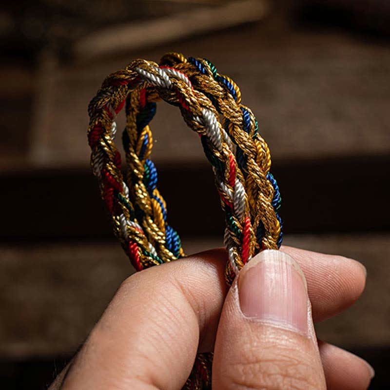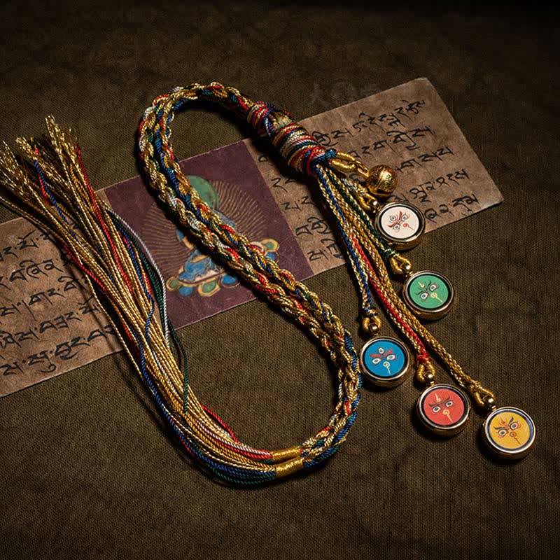Dans les lignées du bouddhisme tibétain Vajrayana, il est courant d'attacher un cordon ou une ficelle autour du poignet lors des cérémonies. Traditionnellement, le lama bénit le cordon, puis fait un nœud et l'imprègne d'un mantra. Comme dans d'autres traditions, on dit que ces cordons rouges portent chance et offrent protection. Dans la légende chinoise ancienne, le fil rouge du destin est invisible et relie tous ceux dont les vies vont s'entremêler. Il est gouverné par le dieu chinois du mariage, Yue Lao, car il est principalement associé au lien entre deux personnes destinées à se marier. Tout au long de l'histoire et à travers les philosophies, le fil rouge a été porté pour la protection, la foi, la chance, la force et la connexion.