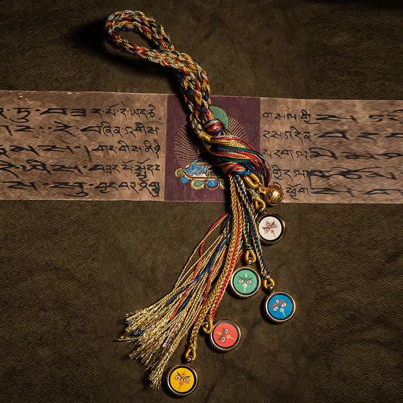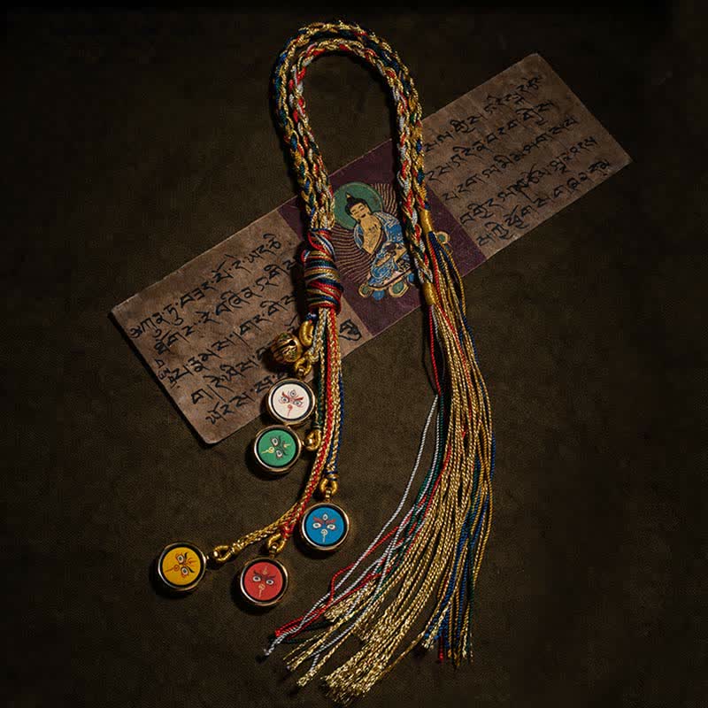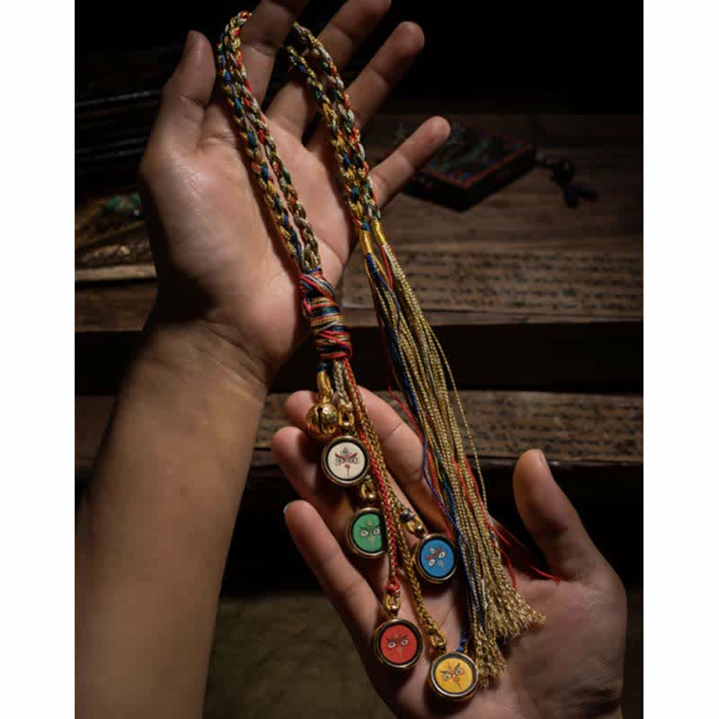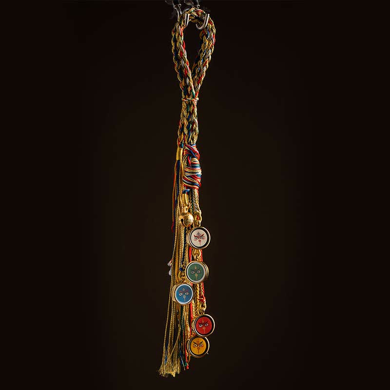 Le Thangka sur le collier représente les cinq dieux de la richesse, qui sont les suivants :