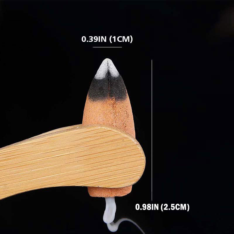- Taille de l'encens : taille du cône : 1 x 2,5 cm (0,39 x 0,98 pouces), durée de combustion : environ 10 minutes. Parfums : bois de santal, lys, œillet, osmanthus, menthe, lavande, jasmin du Cap, rose, océan, absinthe