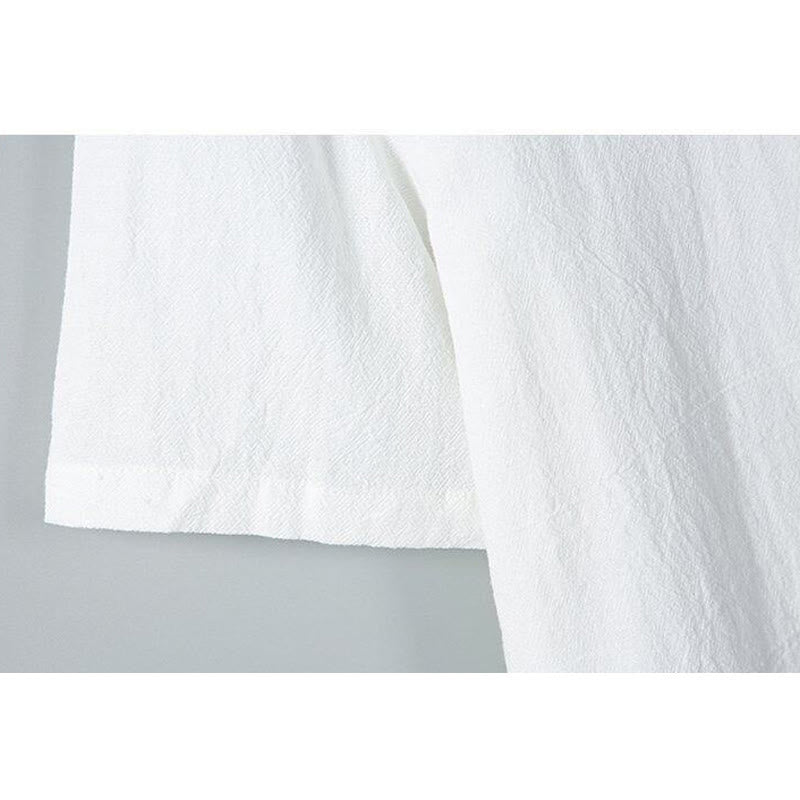 Chemise homme en coton et lin à manches courtes et poches, couleur unie, imprimé Buddha Stones - Blanc - US/UK/AU46,EU56 (5XL) - image 1