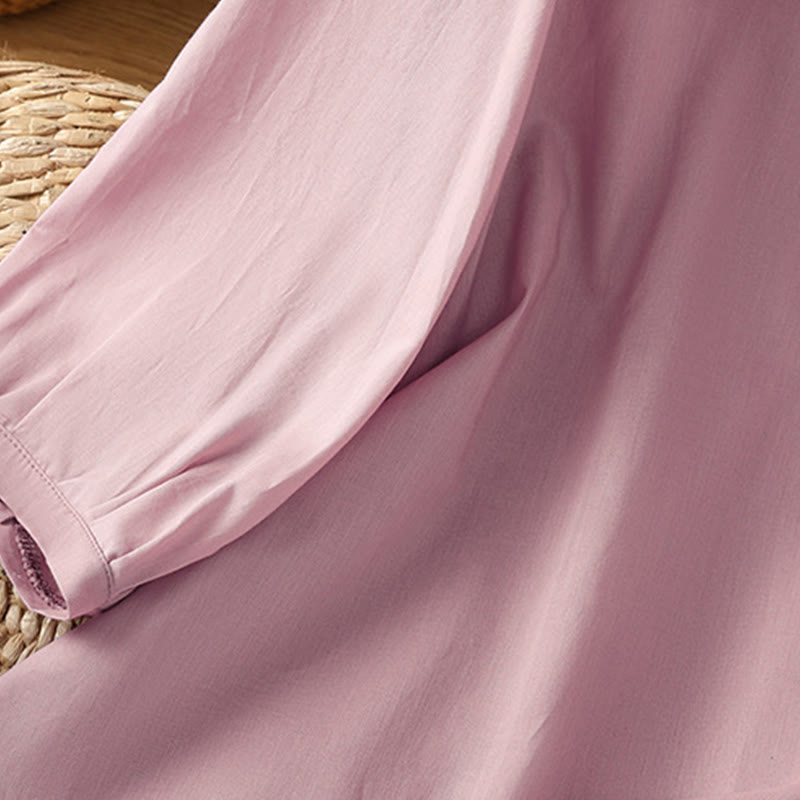Chemise à col ras du cou en coton et lin à manches trois-quarts et simple boutonnage avec ourlet en dentelle et Buddha Stones - Rose - US14,UK/AU18,EU46 (2XL) - image 26