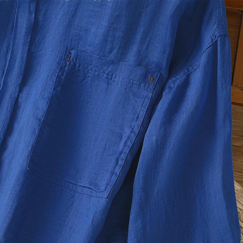 Chemise à manches longues pour femme avec poche et revers, motif Buddha Stones et automne - Bleu moyen - US12,UK/AU16,EU44 (2XL) - image 18