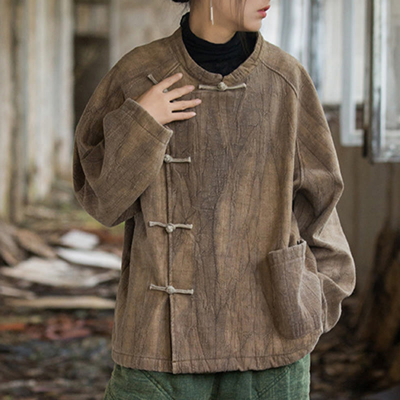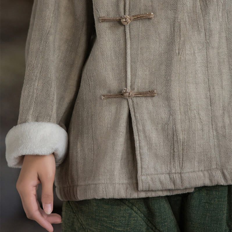 Chemise thermique à manches longues et boutons de grenouille en lin ramie pour femme de couleur unie Buddha Stones