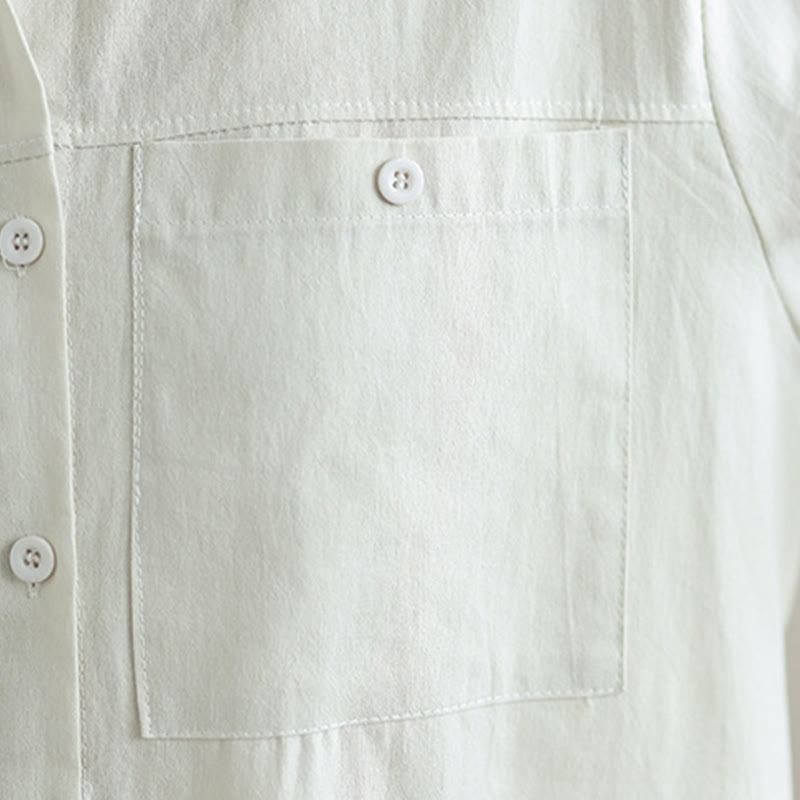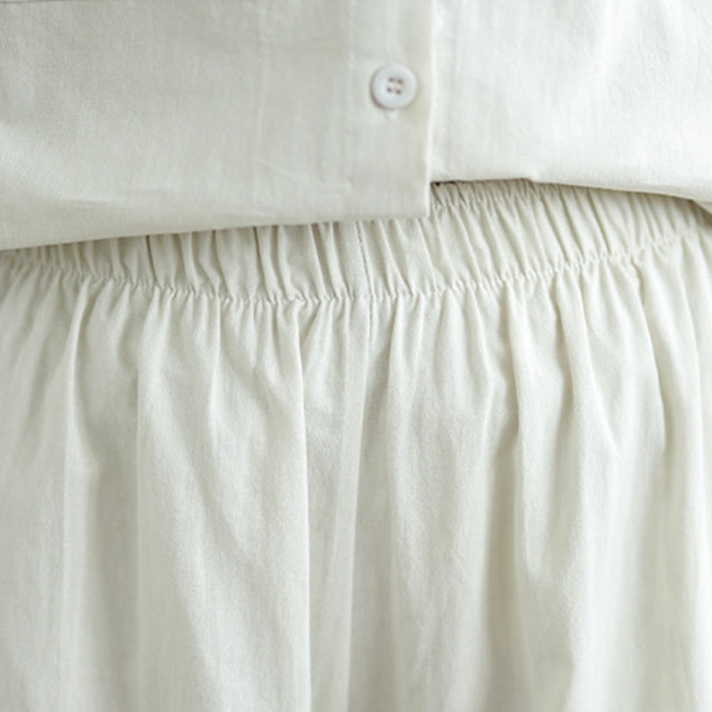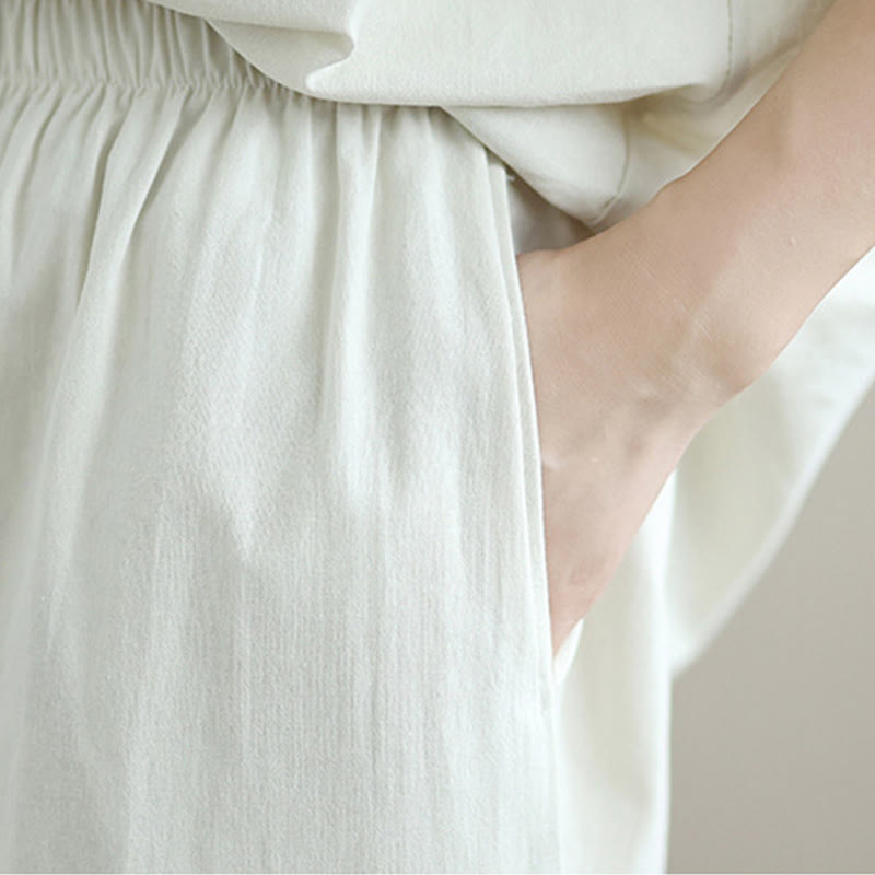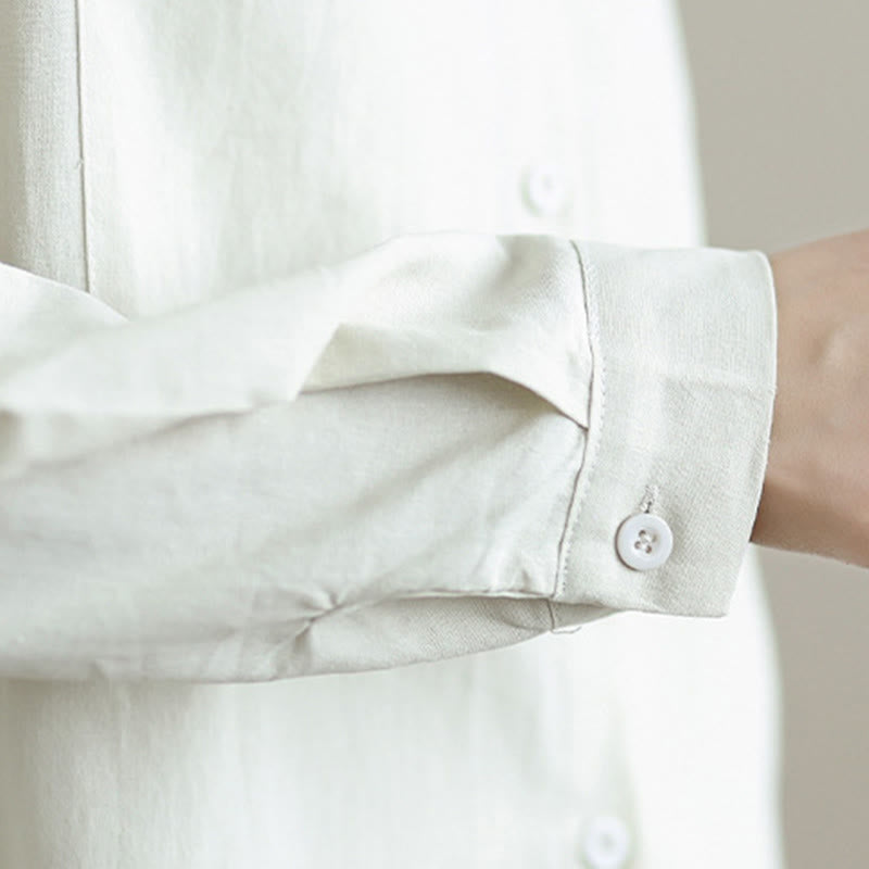 Ensemble 2 Buddha Stones pour femme avec poches, couleur unie, en coton, composé d'une chemise à manches longues boutonnée et d'un pantalon large longueur cheville.
