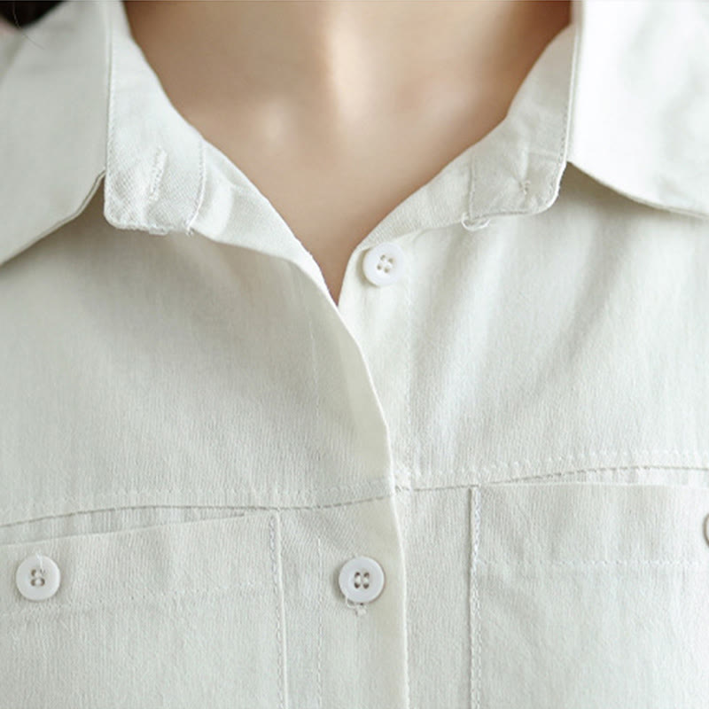 Ensemble 2 Buddha Stones pour femme avec poches, couleur unie, en coton, composé d'une chemise à manches longues boutonnée et d'un pantalon large longueur cheville. - image 8