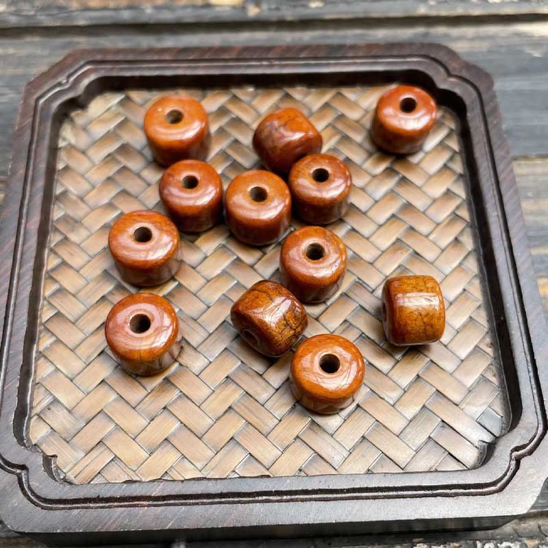 - Matériaux : Perles d'os (provenant d'une ferme), Perle Dzi à trois yeux, Agate, Corne de mouton (provenant d'une ferme), Agate rouge, Bois de santal rouge à petites feuilles, Œil de tigre, Jaspe, Onyx noir, Alliage de cuivre