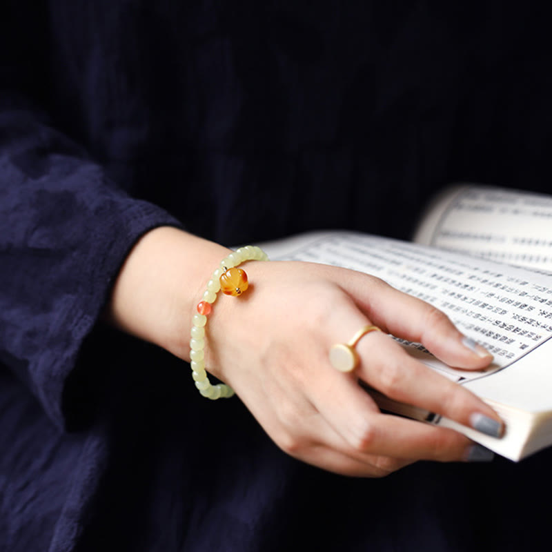 Bracelet de prospérité en cristal d'agate rouge et d'ambre en jade naturel Hetian