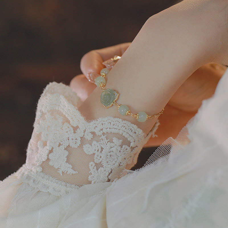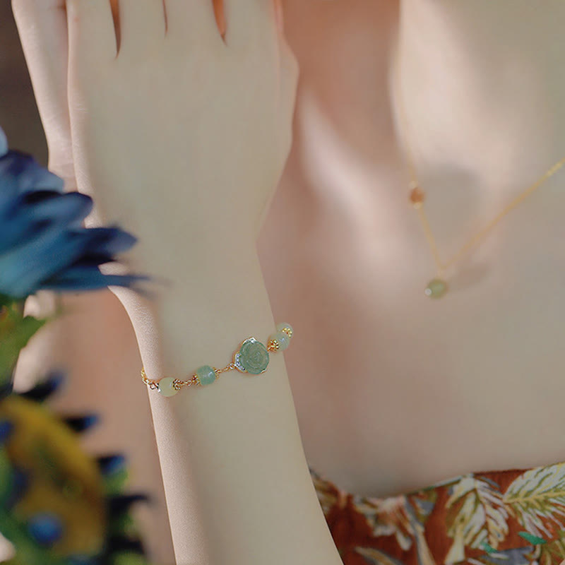 - Taille : Fleur de rose 12 mm, Jade Hetian 6 mm