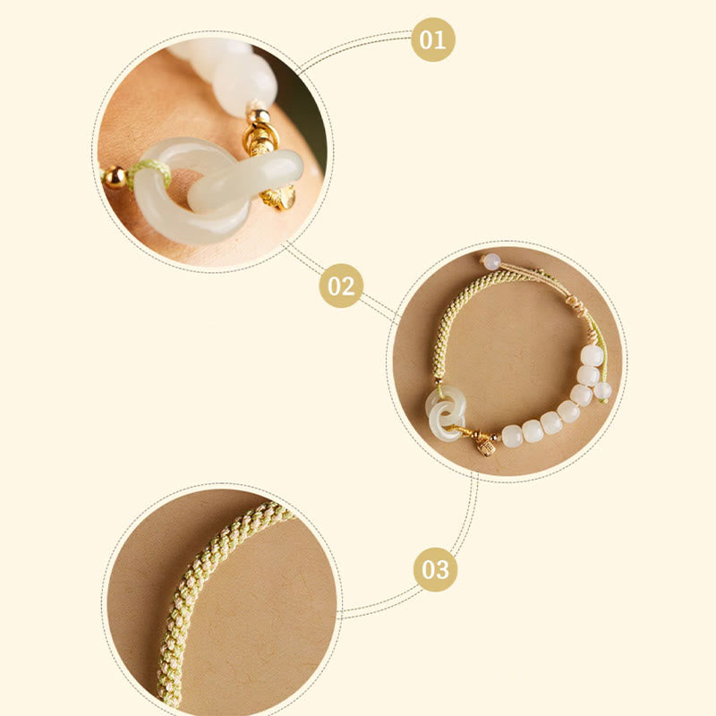 Bracelet tressé en perles de jade Hetian naturelles de Buddha Stones avec boucle de paix double et caractère Fu