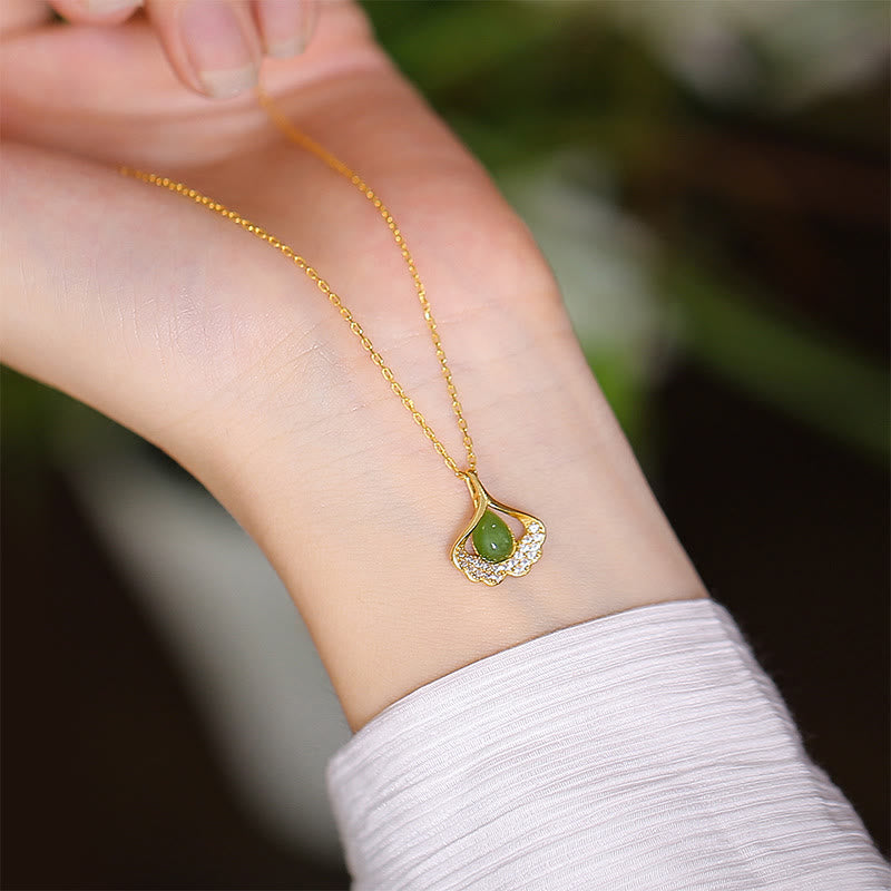 Collier pendentif papillon Bouddha rieur en argent sterling 925 avec jade Hetian naturel cyan - Feuille de ginkgo cyan jade - image 38