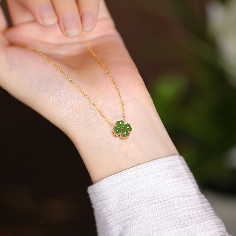 Collier pendentif papillon Bouddha rieur en argent sterling 925 avec jade Hetian naturel cyan - Trèfle à quatre feuilles de jade cyan - image 40