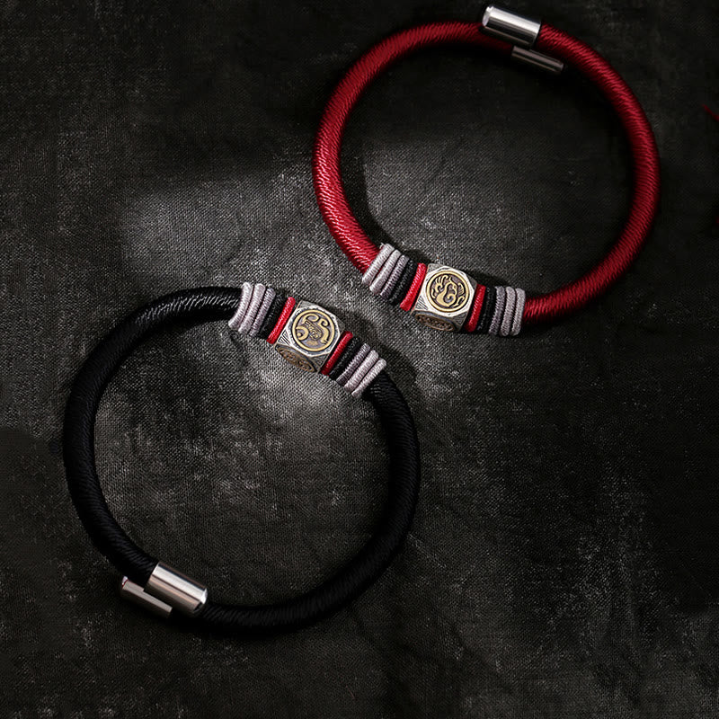 Bracelet tressé fait main en argent sterling 999 Buddha Stones et cœur Sutra Calme