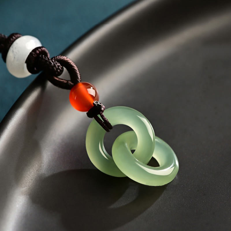 Découvrez les qualités enchanteresses du jade cyan Hetian et du jade blanc avec notre exquis collier de réussite à double boucle de paix. Fabriqué avec précision et soin, ce collier incarne les significations spirituelles de chaque pierre. Le jade Hetian confère le pouvoir de renforcer les souhaits , tandis que le jade cyan apporte vitalité, harmonie et énergie positive . Le jade blanc offre protection, bonheur et chance . La double boucle de paix symbolise la paix, la tranquillité et la générosité . Faites l'expérience des énergies harmonisantes et des transformations positives que ce collier apporte.