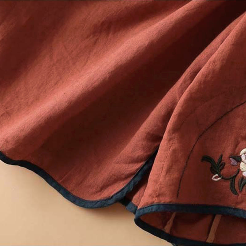 Chemise à manches longues en coton et lin pour femme avec broderie de fleurs rétro et Buddha Stones