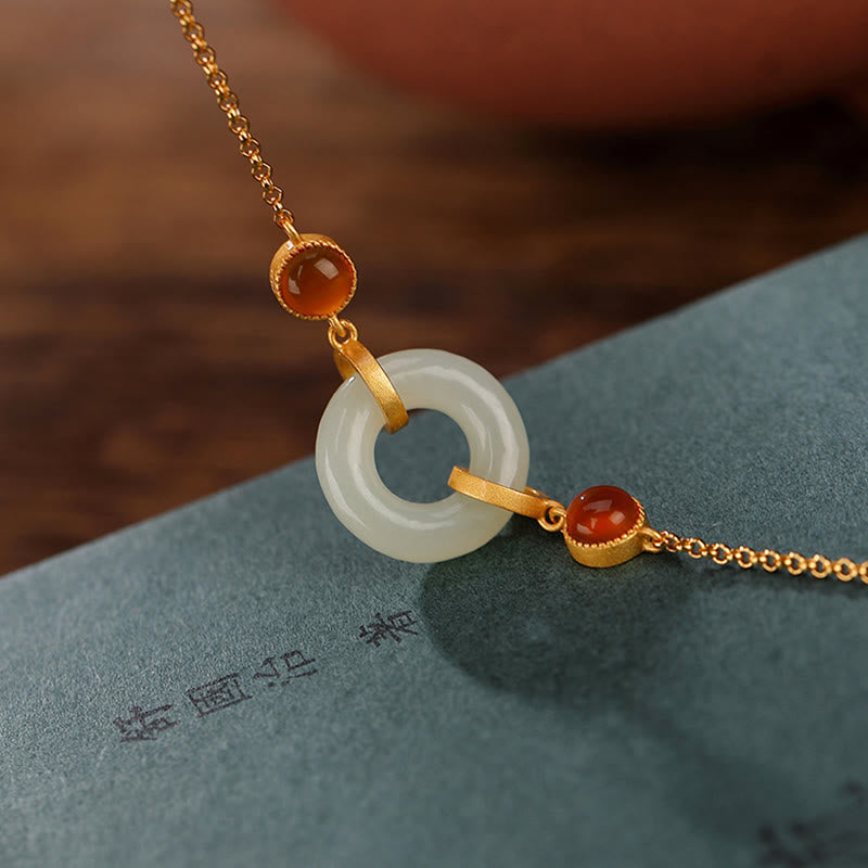 - Matériau : Jade Hetian, Agate rouge, Argent sterling 925 plaqué or