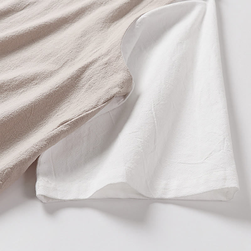 Buddha Stones Chemise d'été 2 en 1 à rayures, col montant, manches courtes et boutons brandebourg pour homme en coton - Amandes blanchies - US/UK/AU54,EU64 (9XL) - image 6